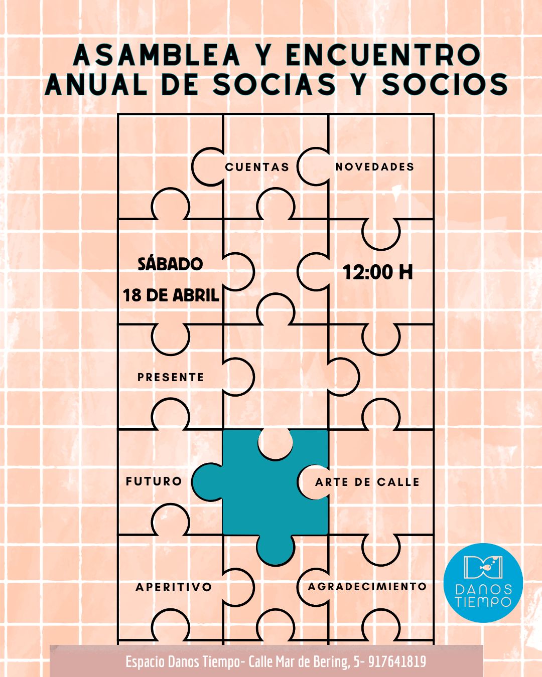 El próximo sábado 18 de abril a las 12:00h celebramos en Danos Tiempo la Asamblea y Encuentro Anual de socias y socios.